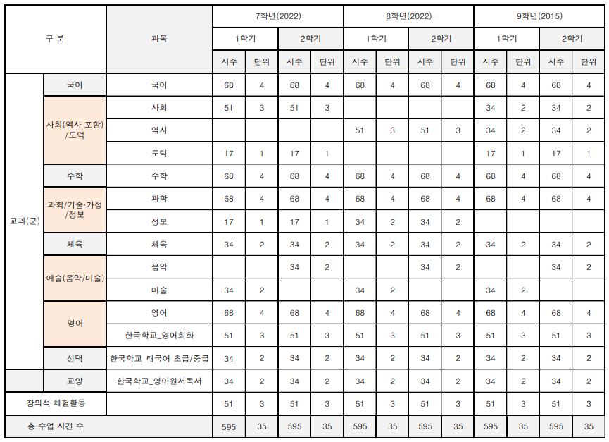 1) 7학년~9학년(중학교 과정)