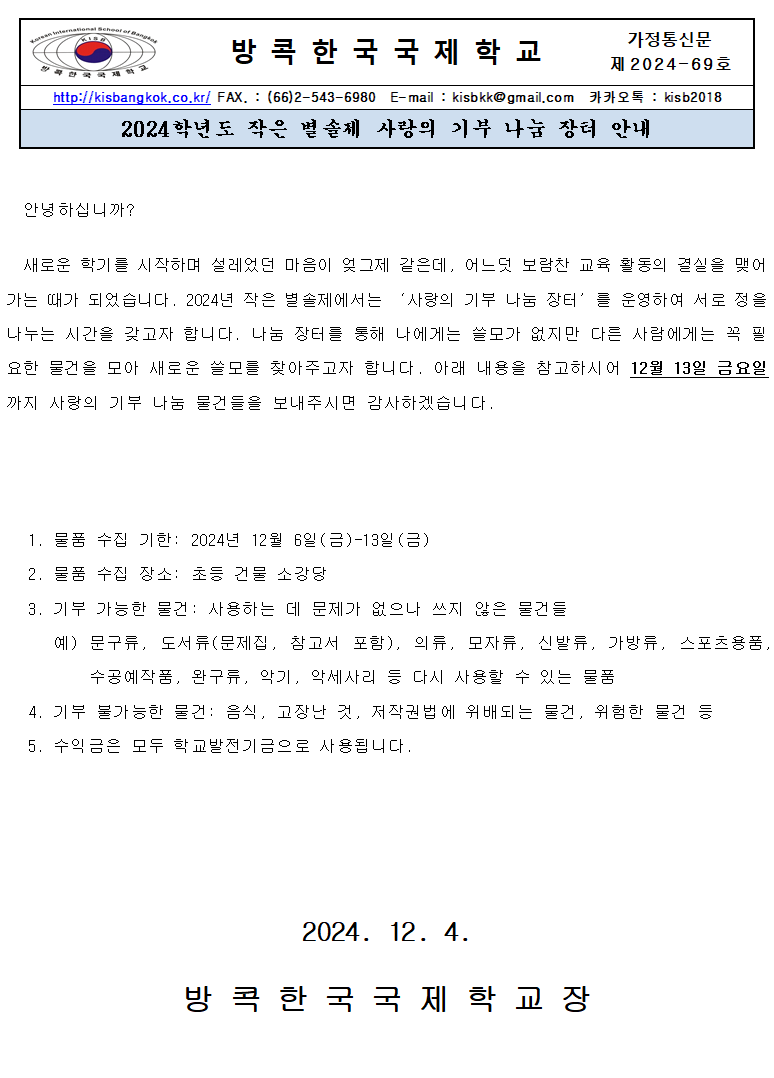 (제2024-69호) 2024학년도 작은 별솔제 사랑의 기부 나눔 장터 안내