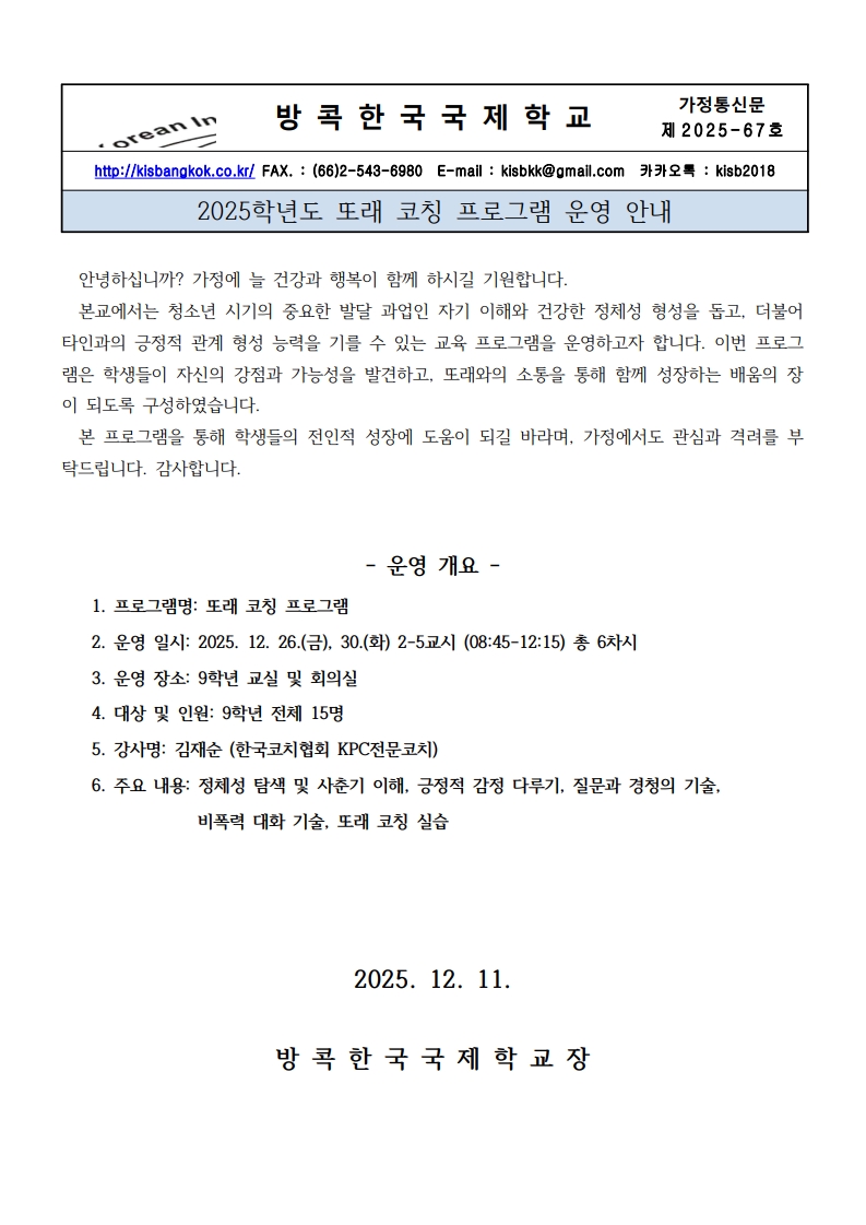 (제2025-67호) 2025학년도 또래 코칭 프로그램 운영 안내 가정통신문(중등)